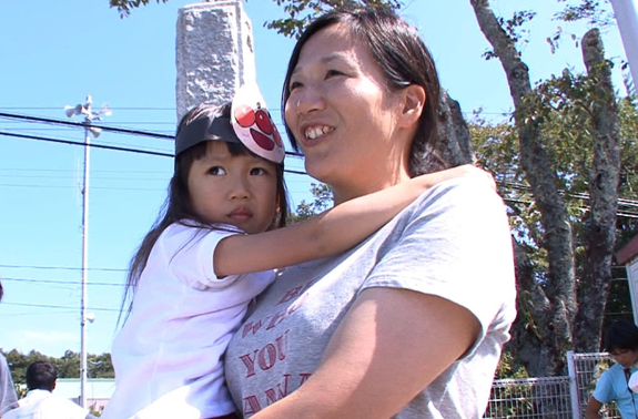 父・上野敬幸さんが代表を務める「福興浜団」のお手伝いに、毎週末やってくるボランティアの皆さんが、倖吏生ちゃんの応援団。