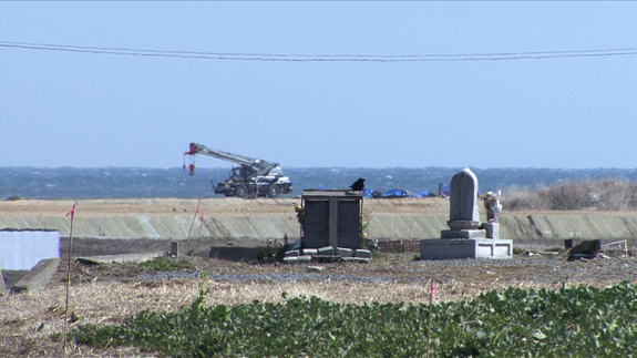 海の方に目をやると、震災復興の護岸工事が、4年後のいま、急速に進んでいることが分かります。