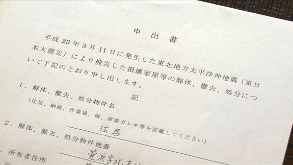 目的は、被災した自宅についての解体要請です。