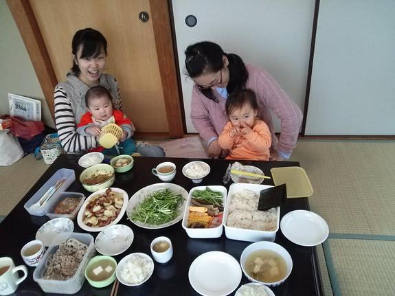 みんなそれぞれ一品持ち寄りでランチしたり、隣では、アロマのハンドマッサージをしあってたり。。