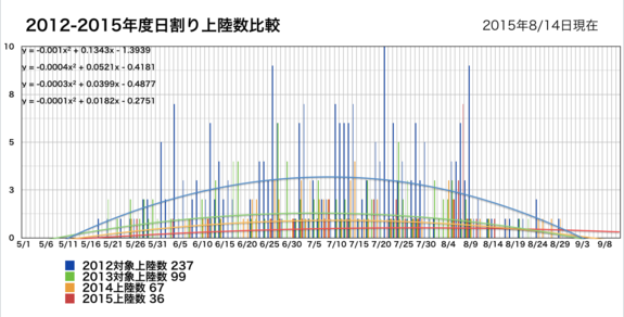 上陸数は後半に少し伸びてきたのですが、後半だけというのも不思議に感じますよね。トラックを観察していると集中した日の足跡、やや小ぶりな印象。ひょっとすると、栄養不足なウミガメで、抱えている卵数も少ない可能性がありますね。