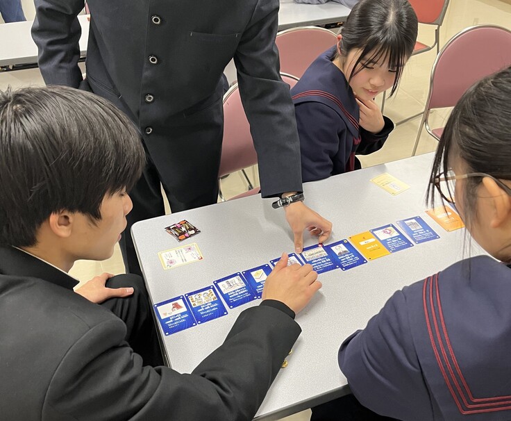 ※本画像は授業風景ではなく、カードゲーム体験会の画像です。画像掲載を行うことの許諾を生徒の保護者より取得しております。