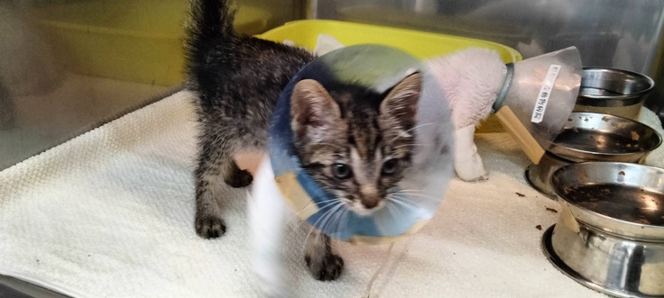 現在、外で生まれ保護した子猫1頭と、母猫捕獲後に生まれた1頭が、全身状態が悪いため(発熱・下痢・嘔吐・食欲不振他)7月13日より入院中です。