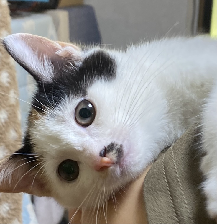 白ミケちゃん 二週間早く産まれた子猫のいるお宅で昨日よりトライアル開始です。