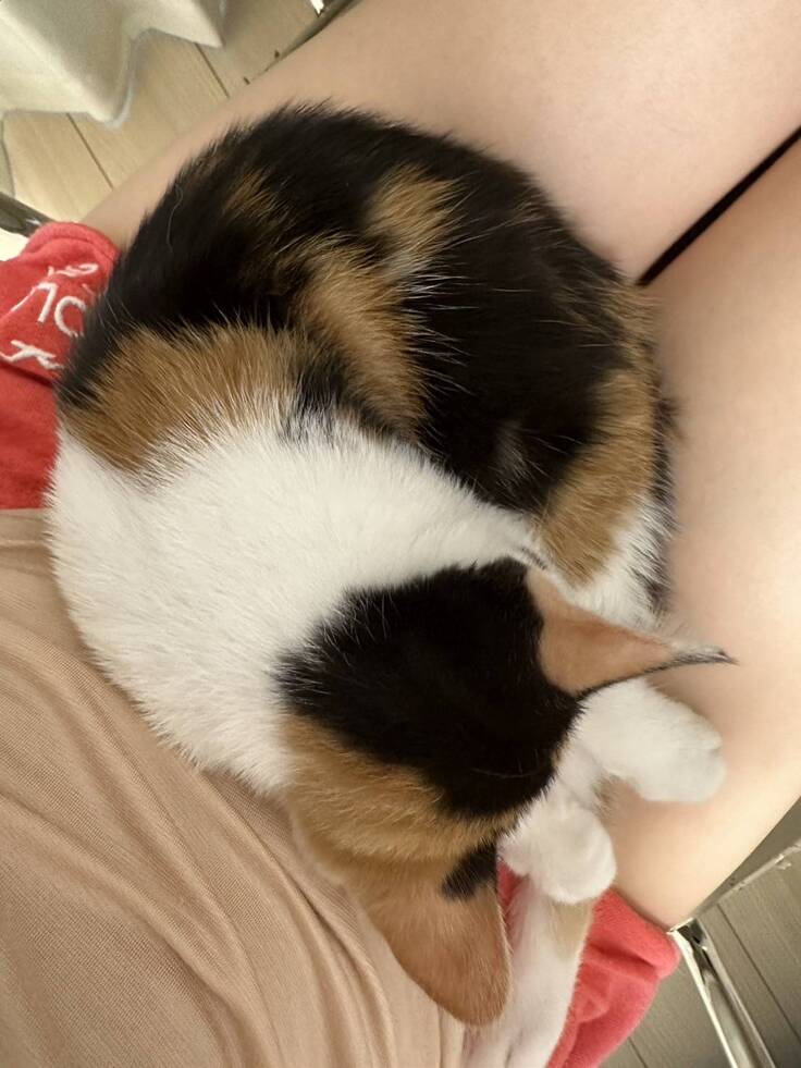 外で保護した茶白くん、体調崩して入院しましたが、お腹にガスが溜まっていたらしく、