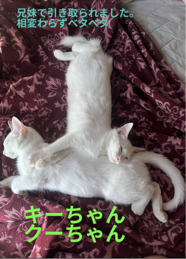 そろそろ避妊・去勢を施していただき、その都度、連絡をいただいています。