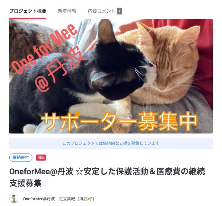 OneforMee@丹波 ☆安定した保護活動&医療費の継続支援募集