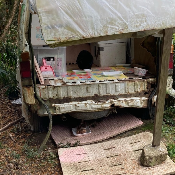 そんな寒さの中でもみんにゃ私が来るのを待ってくれていたり、車の音を聞きつけて急いでおじさんの家の方から出てきてくれたり、猫ホテルから出てきてくれる子もいます。