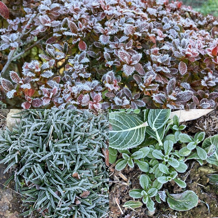 雪は降ってませんが、植物に霜が降りてました。