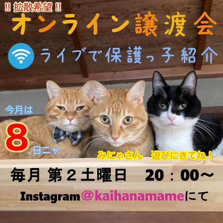 またまた告知がギリギリになってしまいましたが、4月のオンライン譲渡会を今週末の8日にInstagram @kaihanamame アカウントにてライブ配信にて開催させていただきます。