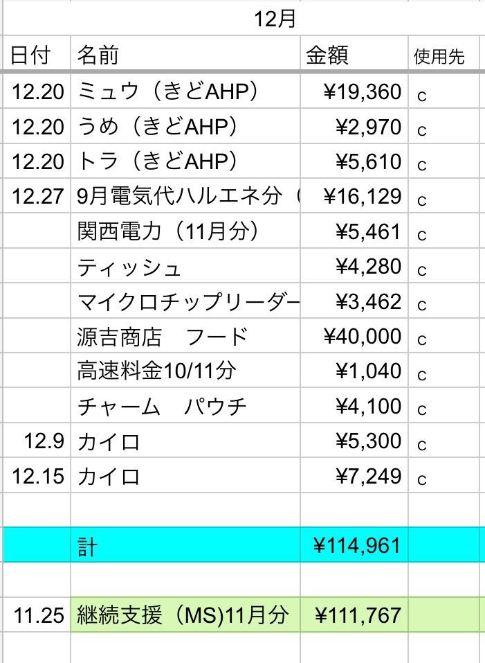 また、固定費や光熱費、フード代等必要な出費にも充てさせていただけ大変ありがたいです。