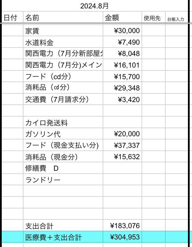 8月も、継続して医療が必要な子たちにたくさんの医療費が掛かりました。