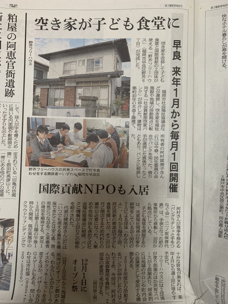 空き家を利用して子ども食堂にする活動が朝日新聞に掲載されました!
