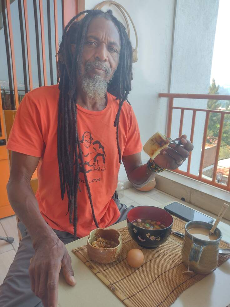 正月二日目は私はいつものようにパンを食べ、ガテラは年越し「うどん」が残っていたので、それを食べた。