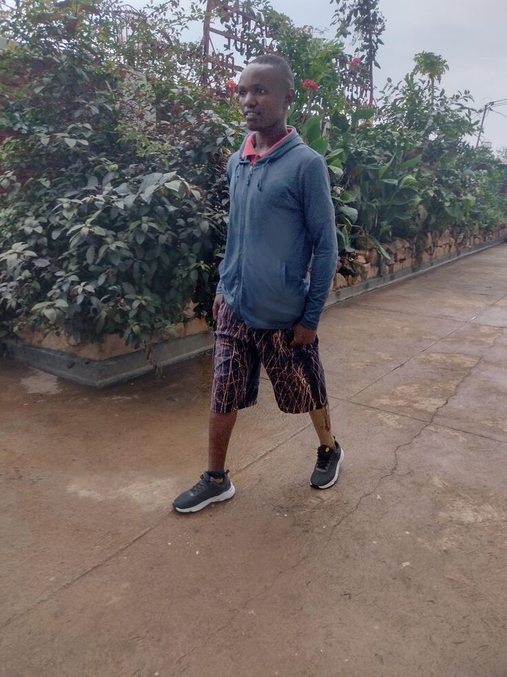 虐殺の前の年に生まれ、11歳の時に事故で足を失ったこの男性は、2014年にキガリから北の方に上ったところで行った巡回診療で義足を手に入れた。