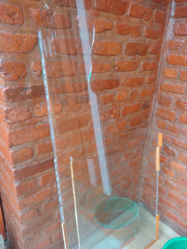 割れてしまったガラス、まだ大きく残っている部分もあるので、もったいないから捨てない。別の場所に使えそう。