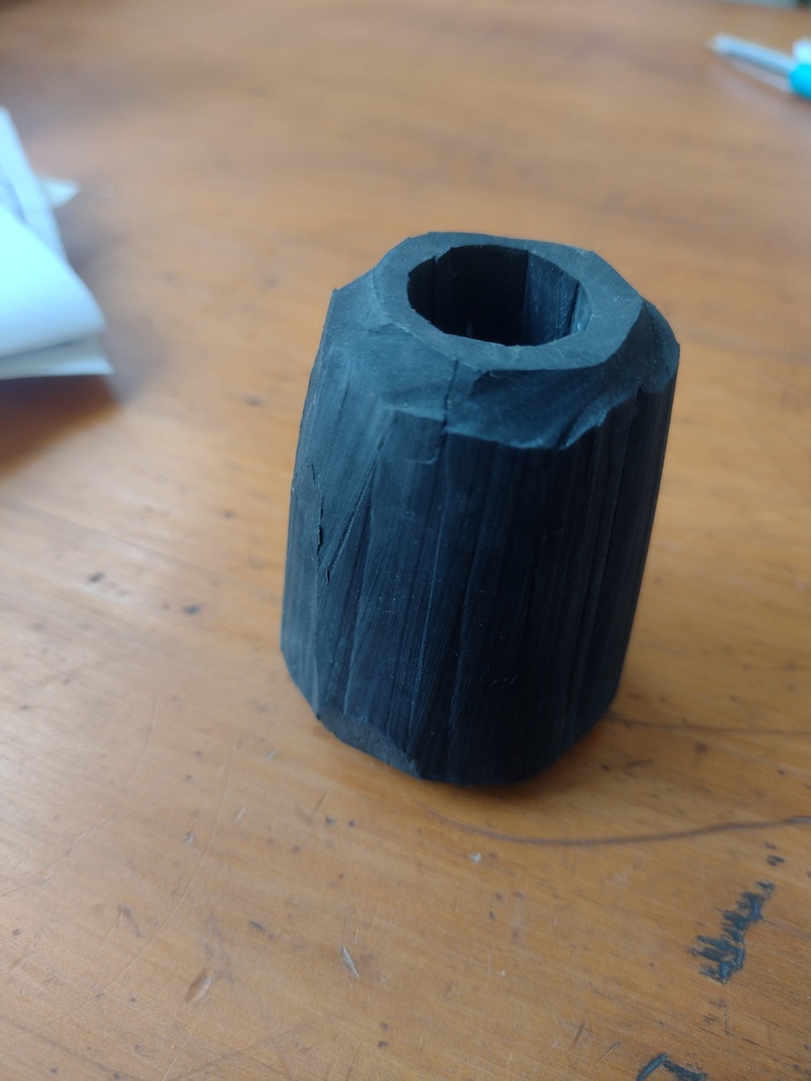 古タイヤを杖先ゴムに加工するのは結構力がいる。思った以上にゴムが硬いのだ。それをひとつひとつ小刀で切り出し、中をくり抜く。その男性は無骨な手をしていた。まだ若いのに、武骨な手だった。
