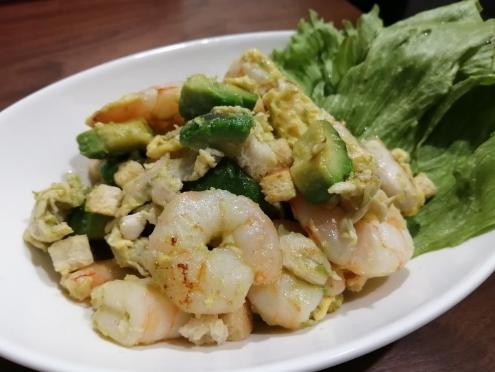 その名も【筋肉炒め】です!(海老アボカドささみのガーリック炒め)