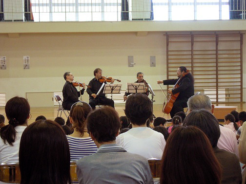 当地における初回のカルテットは、同年地元小学校でのヴァイオリンクラブ創設と公民館でのヴァイオリン講座の開設を通じ、ヴァイオリンの手ほどきを受けた第1期生の受講生が参加することになり、アンコールでプロ奏者と「きらきら星」を合奏する機会が得られたため、来場者に丹後の子供たちがヴァイオリンを手にして弾く姿を初めて見て頂くことができました。