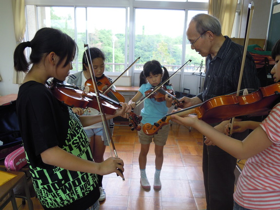 (子供達と合奏する様子。この子供たちの中からプロのヴァイオリニストが誕生するかもしれません。)
