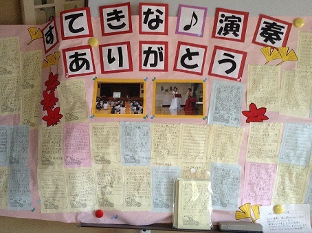 (演奏を聴いてくれた子供たちの感想文です。みんな楽しんでくれたようです。)