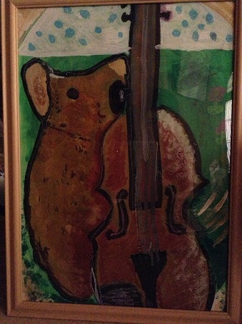 子供たちや大人に「京都北部の過疎地において良質な音楽の息づく環境づくり」の活動の輪に入り、楽しんでいただけるように、愛くるしいくまとヴァイオリンの絵を音楽が大好きな小学生に描いて貰いました。