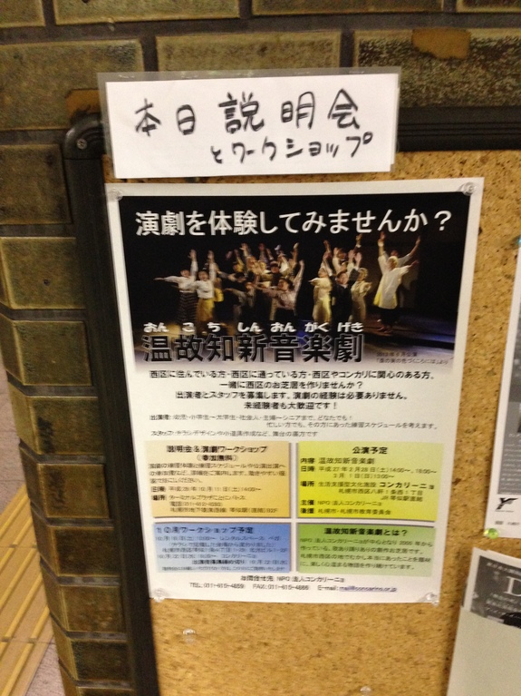さて本日10月11日、パトスにて「温故知新音楽劇」の説明会とワークショップを行ないました。
