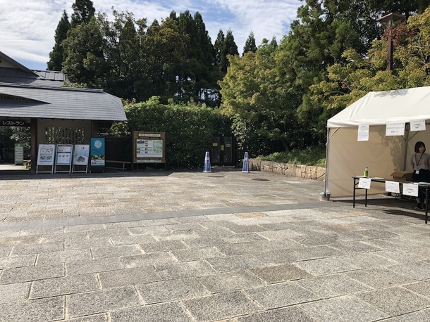 クラウドファンディング支援者様向けの、リターン品引き換えブースは、「緑の館」のすぐ手前にテントを張っています。