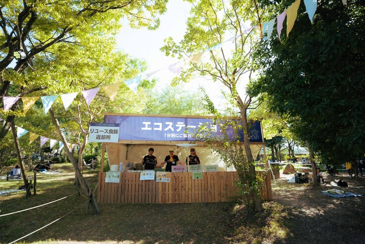 京都音博では開催当初から、ごみ・資源の分別ナビやリユース食器の導入、フライヤーやチラシを作成しないなど、できる限りゴミが出ないように、ご参加いただく皆さまのご協力のもと、環境に対するさまざまな取り組みを行ってきました。そのおかげで、これまで京都音博では終了後にごみが散乱しているような状態を見たことはほとんどありません。