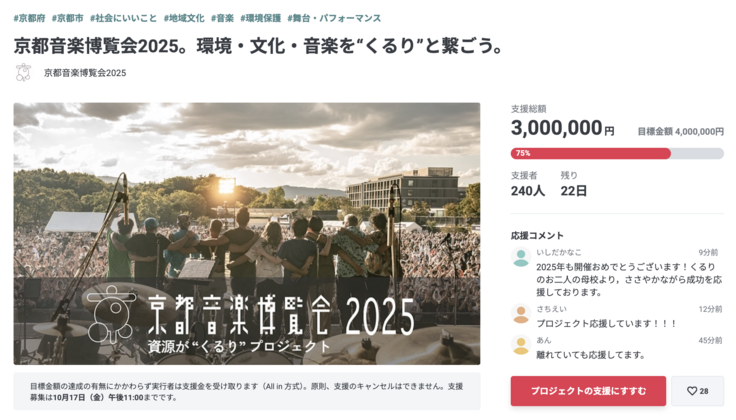 引き続きのご支援・情報拡散での応援を、何卒よろしくお願いいたします!皆さまと京都のまち、梅小路公園で笑顔でお会いできる日を、心より楽しみにしています!
