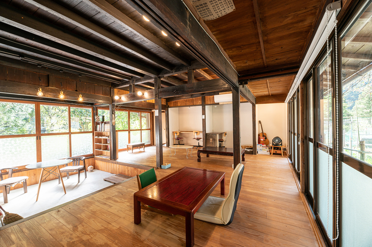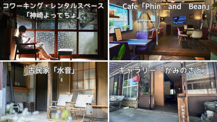 私たちが移転先として目をつけたのは、「おんせぇよぉ〜」から徒歩3分の場所にある古民家「神崎よってちょ」でした。この施設は、空き家となっていた古民家を改修し、2021年からコワーキング&レンタルスペースとして活用されています。外から訪れるお客さんだけでなく、地域の方向けにボランティア足揉みをしたり、新年会やクリスマス会をしたりと、地元でも馴染みのある場所になっています。