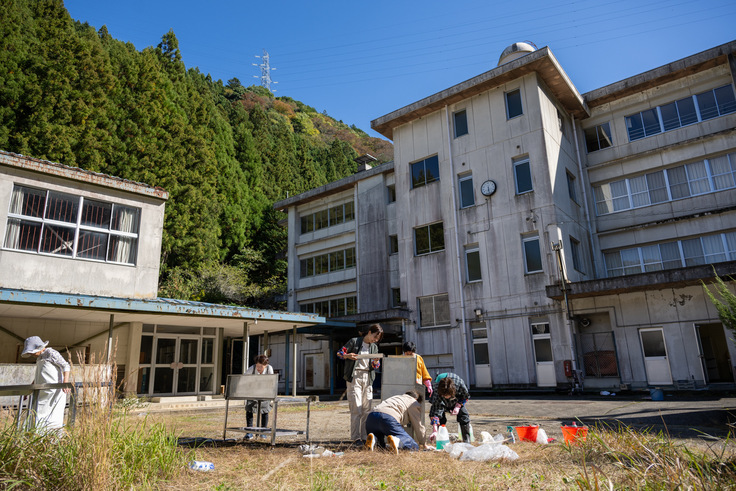 老朽化による漏水で利用できなくなった旧北山小学校には、調理台やフライヤーなど、レストランの備品が置いたままになっています。
