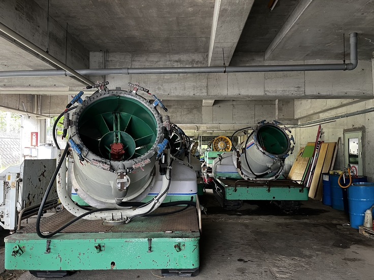 御嶽にある降雪機はかつては最先端の降雪システムで有り、モニターで湿度や温度などが確認ができ、ボタンで操作ができ、全自動で降雪作業が可能でした。
