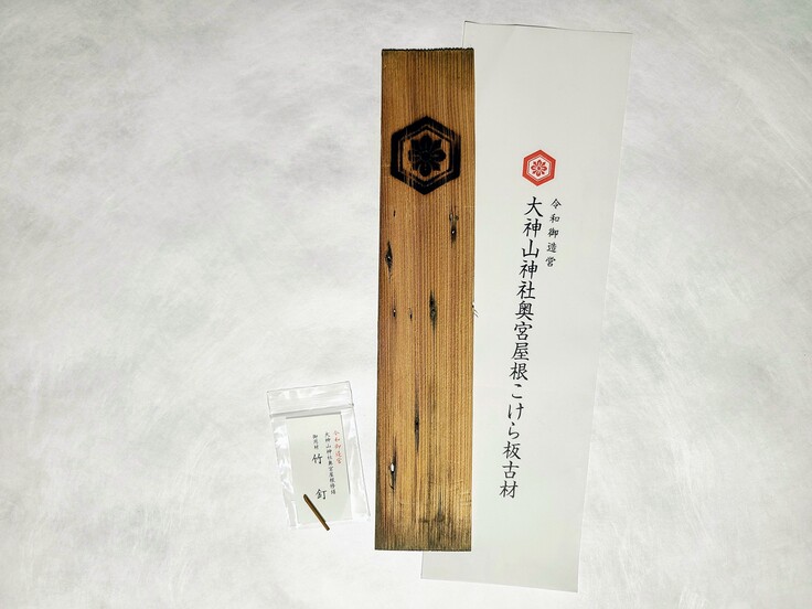 どうぞご家庭の安全堅固をお祈りする縁起物として、奥宮屋根古材こけら板をお授け下さい