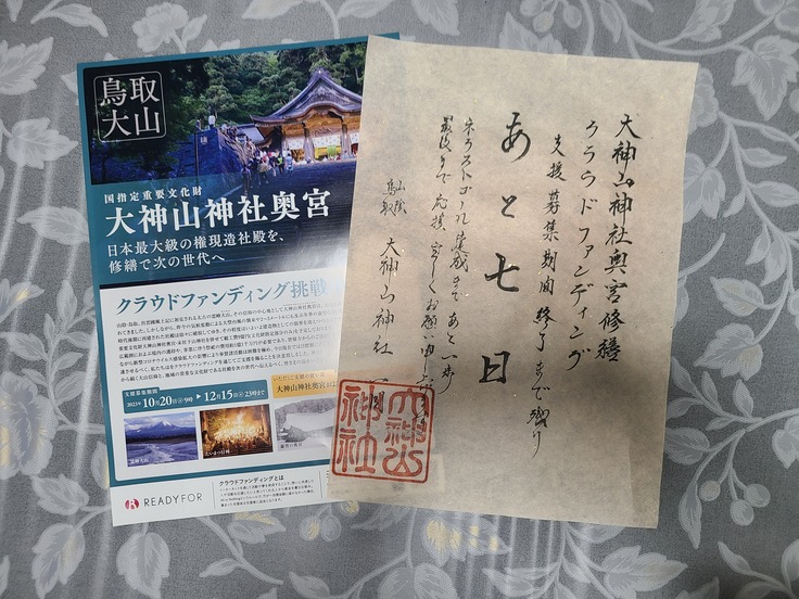 クラウドファンディング限定 朱印紙+奥宮古材こけら板