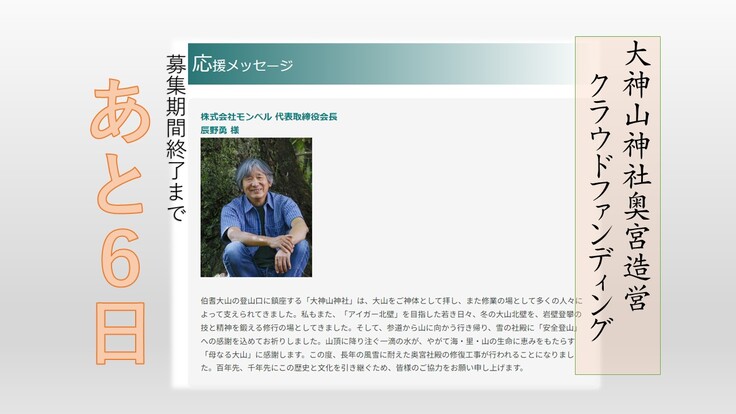 多くの方々に大山の魅力に気づいていただくべく、ともに栄えますこと大山の神々にご祈念申し上げてます