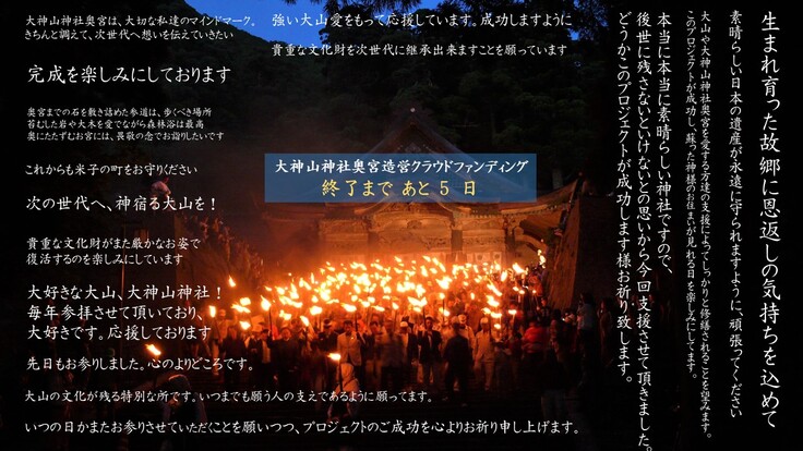 あと5日で終了してしまう大神山神社奥宮造営クラウドファンディング