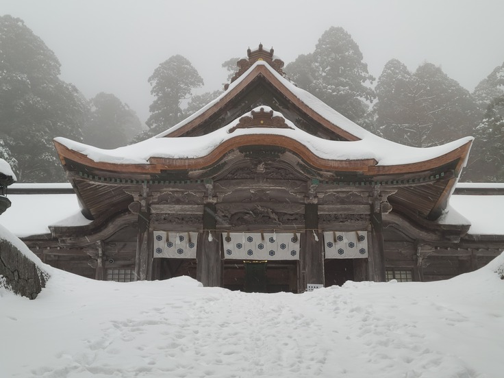 まだまだ雪がたくさんありますが、白く染まった神秘的な参道と社殿、この時期しか見ることができない奥宮の景色を皆様にもご覧頂きたいと思います
