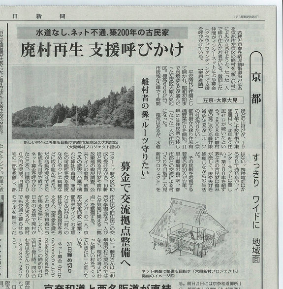 本日の毎日新聞の朝刊、京都欄に掲載いただきました!