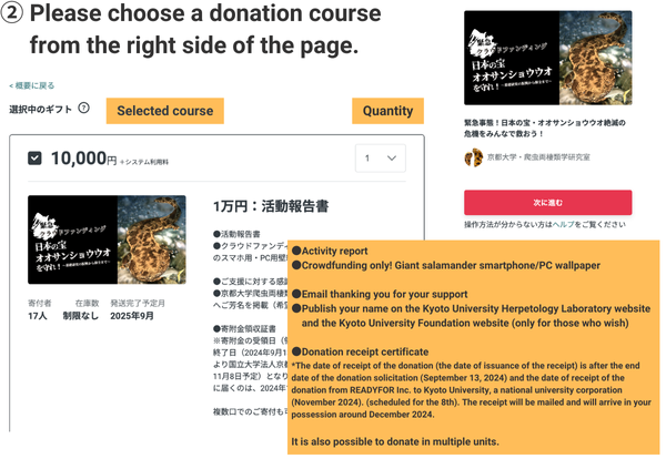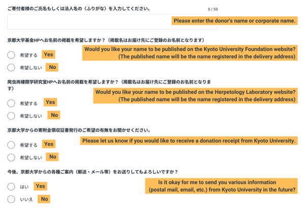 ●京都大学爬虫両棲類学研究室HP・京都大学基金HPへご芳名を掲載(希望者のみ)