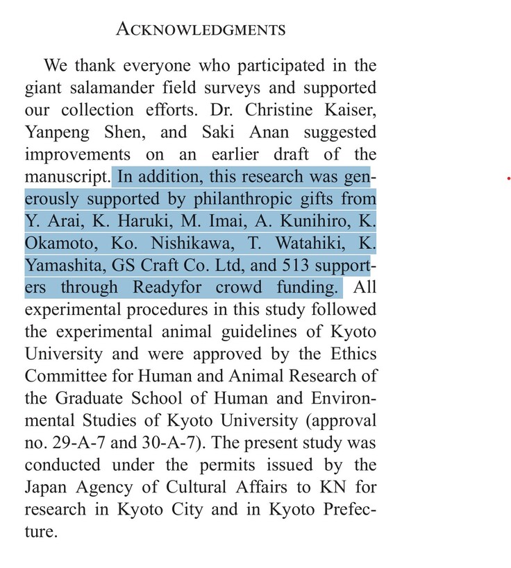 論文の謝辞欄(本投稿に添付)には、皆様からご寄付いただいた旨を表記しております。
