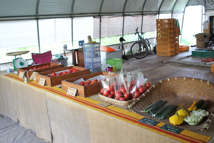 就農15年で畑で直売所を開いて、農家から直接消費者の方にトマトをはじめ色々な旬の野菜やブルーベリーなどを販売しています。