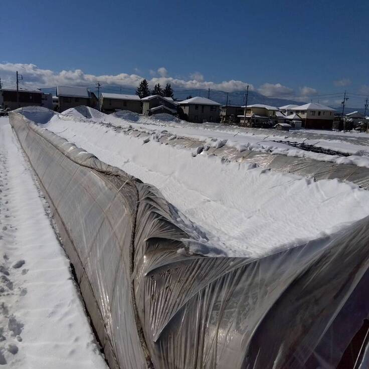 今年の2月5日から降り続いた大雪で、トマトを栽培する2000㎡のビニールハウスが倒壊してしまいました。他の野菜が作れても、トマトが作れないと当菜園の状況では廃業するしかありません。