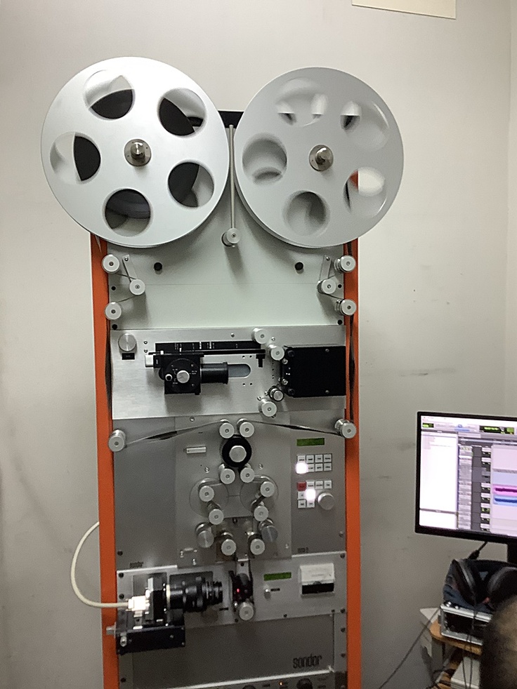 東京現像所さんでは、アリスキャン(ARRISCAN)、スキャニティ(Scanity HDR)、スキャンステーション(ScanStation)、シンテルスキャナー(Cintel Scanner)と、日本でも有数のスキャン機材を揃え、映画製作会社各社で所蔵している旧作の修復からデジタル化までを手掛けるなど、フィルムのアーカイブ事業にも力を入れています。なかでも、映画フィルムの音声のデジタル化に関しては、日本に2台しかないアーカイブ専用の、ゾンダー(SONDOR)社のレゾナンス(Resonances)という装置を駆使し、スキャン映像から音声をデジタル化出来るのが、東京現像所さんの強みです。