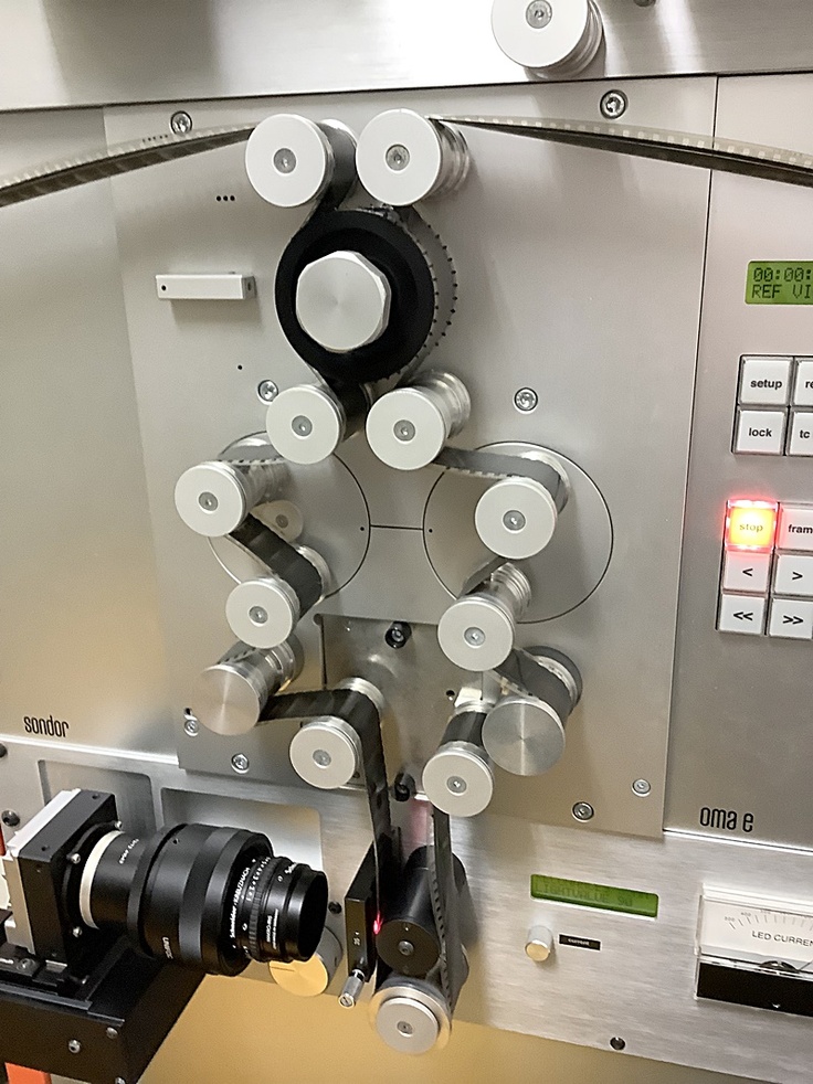 SONDOR RESONANCESは、モーターによりフィルムを巻き取る速度は一定となりますが、フィルムに掛かるテンションが緻密に計算されており、また可動式のローラーが、フィルムの状態によりテンションを自動的に調整するため、フィルムに負荷が掛かりにくくなっているそうで、まさにアーカイブ作業用に設計されたスキャナーだそうです。