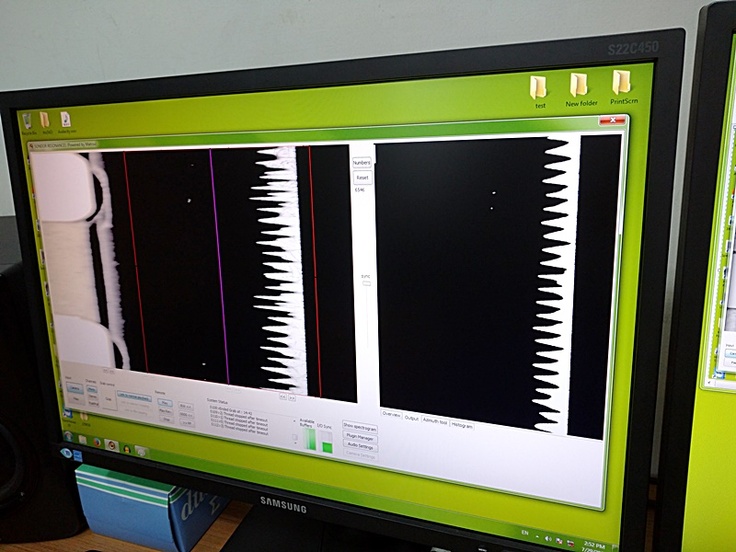 本日の主役、SONDOR RESONANCESは4畳ほどの細い部屋にあり、そこで作業を拝見しながら、今回のスキャン作業をご担当頂いた東京現像所サウンドコーディネーターの森本桂一郎氏にご説明を伺いました。