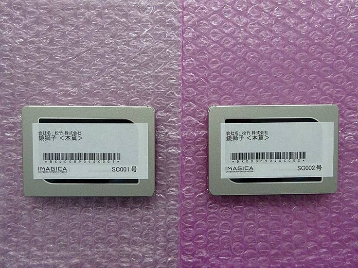 映画館上映用の4KDCP(4Kデジタルシネマパッケージ)が格納されたSSD2台。映写する映像の大きさを確認するための「フレームチャート」と、『鏡獅子』の無字幕版、日本語字幕版、英語字幕版が格納されています。