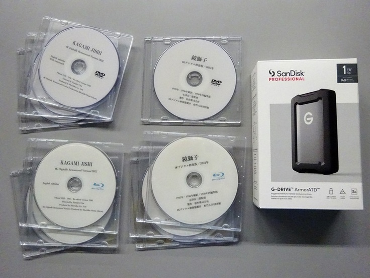 初号試写を経て完成した『鏡獅子』4Kデジタル修復版の原版(4KDSM=4Kデジタルソースマスター)から、上映用の4KDCP(4Kデジタルシネマパッケージ)や、放送用や配信用などホームエンタテインメント用の各種メディアが作成され、この度いよいよ株式会社松竹映像センターより納品されてまいりました!