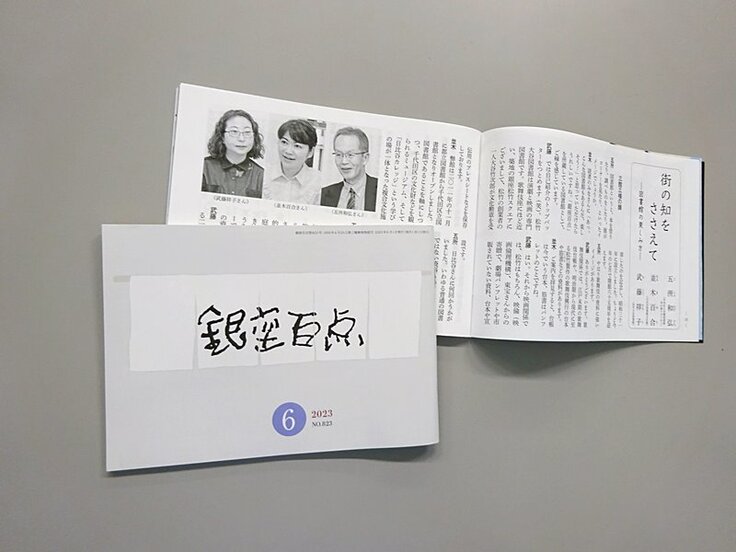 6月号の座談会では、「街の知をささえて―図書館の楽しみ方―」と題し、中央区立京橋図書館館長の五所和弘様、千代田区立日比谷図書文化館広報プロデューサーの並木百合様、そして当館の武藤祥子の三人が、それぞれの館の特徴や活動、資料の魅力について、10ページにわたり熱く語っております。
