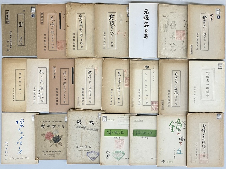 写真は【映画台本】作品リストより、大阪松竹座上映作品リストの全台本です。